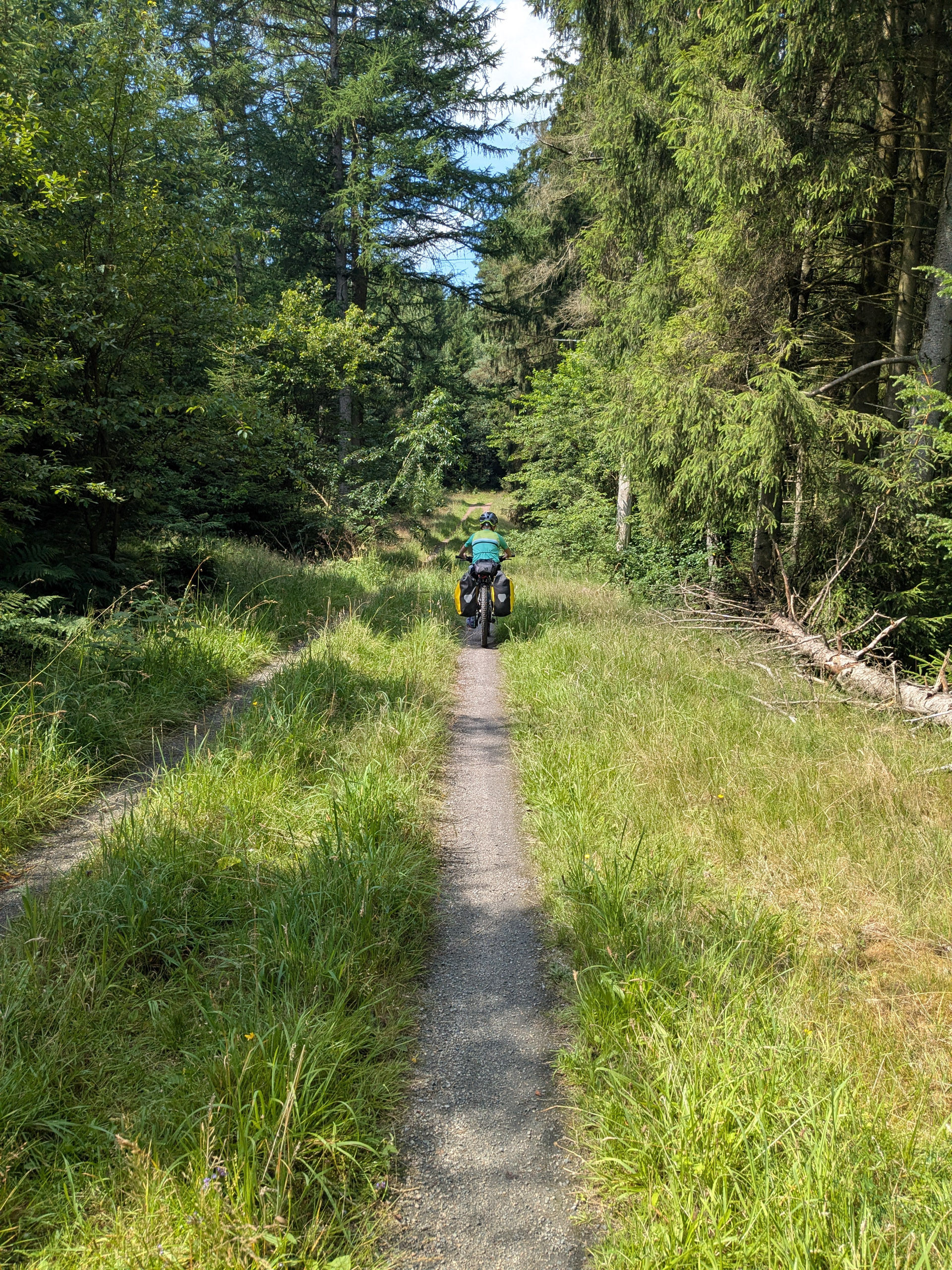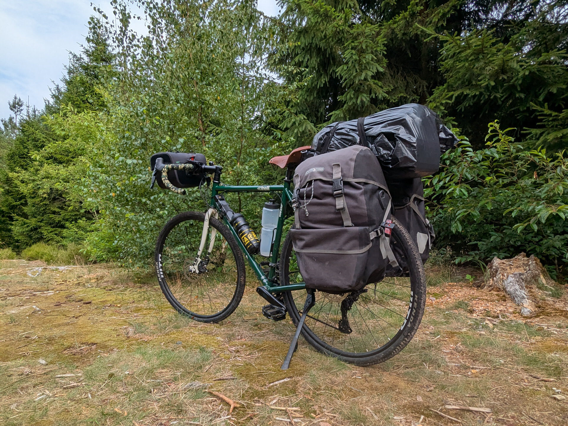 Alle hatten je zwei Ortlieb Taschen an den Seiten des Gepäckträgers, sowie drei von uns eine Lenkertasche von Ortlieb o. Vaude. Die Kinder hatten beide auch noch eine Tasche auf dem Gepäckträger, wo sie verschiedenes drin verstauen konnten. Wir Eltern hatten noch je ein kompaktes 2-Personen Zelt und Papa noch eine Isomatte auf den Gepäckträger geschnallt.