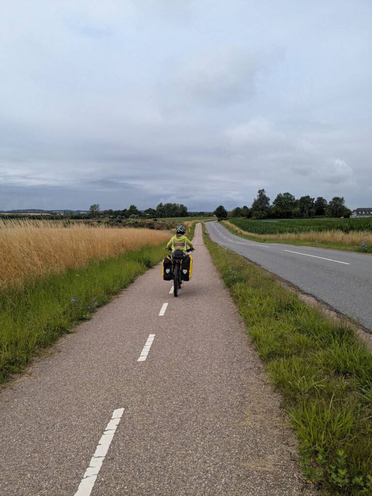 Insgesamt war Dänemark ein sehr tolles Land um Fahrrad zu fahren: die gut ausgebauten Radwege werden oft parallel zu Strassen oder durch wenig befahrene Nebenstrassen geführt. Teils gibt es auch markierte Streifen auf mit Autos geteilten Strassen. Positiv aufgefallen ist uns dabei, dass die Autofahrer meist vorbildlich Rücksicht nahmen. Wir fühlten uns somit eigentlich immer sicher. Geht es durch einen Kreisverkehr, so gibt es oft eine farblich hervorgehobene Spur am Rande des Kreisverkehr für Fahrräder und die Autos lassen einem dem Vortritt wenn sie den Kreisverkehr verlassen wollen und somit die Radspur kreuzen.