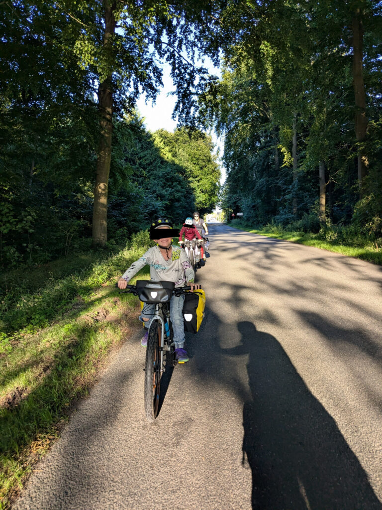 Alle hatten je zwei Ortlieb Taschen an den Seiten des Gepäckträgers, sowie drei von uns eine Lenkertasche von Ortlieb o. Vaude. Die Kinder hatten beide auch noch eine Tasche auf dem Gepäckträger, wo sie verschiedenes drin verstauen konnten. Wir Eltern hatten noch je ein kompaktes 2-Personen Zelt und Papa noch eine Isomatte auf den Gepäckträger geschnallt.